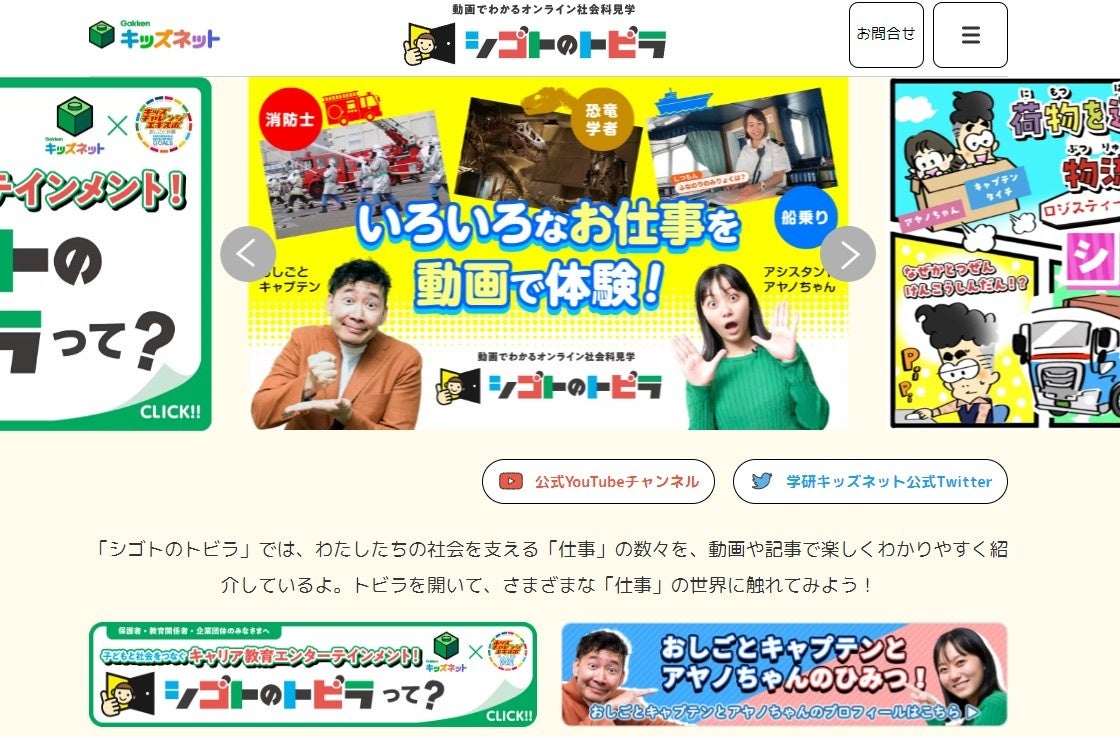 「シゴトのトビラ」は、動画と記事コンテンツを通じて、さまざまな仕事を子どもたちが体験し、学べる無料の“オンライン社会科見学”コンテンツ。