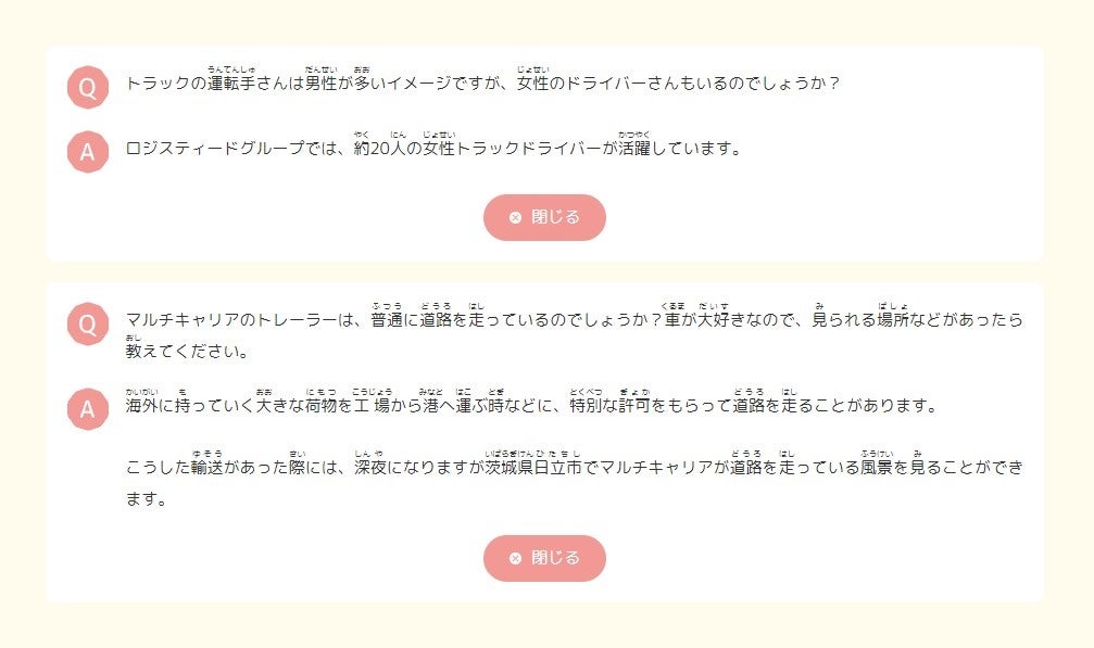 Q&Aを通して、動画や記事では伝えきれなかったその企業でしか知りえない貴重な情報や最新事情まで掲載。 子どもたちの知的好奇心を刺激する双方向性のあるWEB設計で、インタラクティブな学びを実現しています。