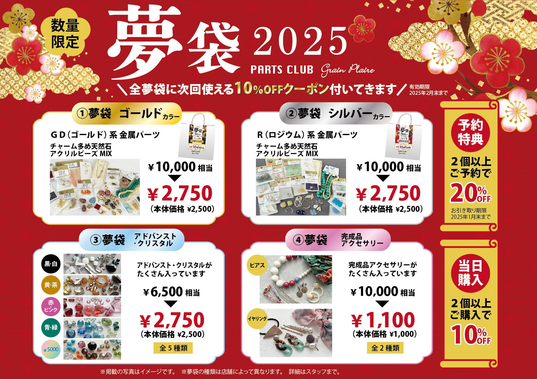 ビーズ&アクセサリーパーツが詰まった「お正月夢袋2025」をPARTS CLUB店頭で12/1(日)よりご予約受付を開始。