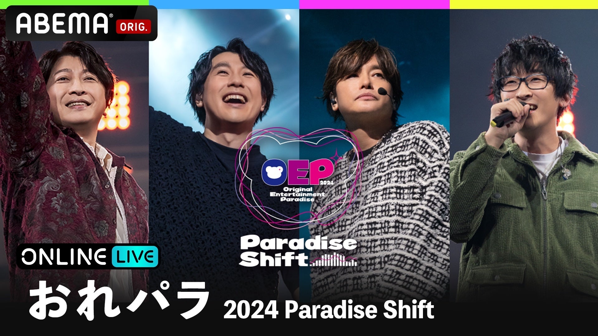 小野大輔、鈴村健一、森久保祥太郎、寺島拓篤がホストを務める『おれパラ 2024 “Paradise Shift”』12月21日(土)に「ABEMA PPV」にて、昼・夜両公演を独占生配信!