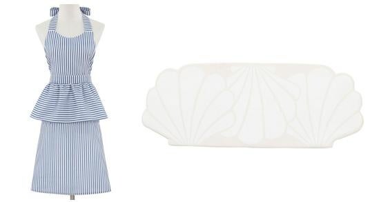【爽やかな色柄のフリル付きエプロン&キッチンマット】
