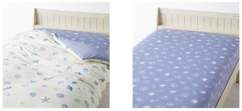 接触冷感「Nクール」の寝具カバーや、涼しげなガラス食器、熱を遮るカーテンなど、見た目も機能も夏にぴったりなアイテムが揃っています。いつものお部屋にマリンテイストを足して、リゾート気分で心躍る夏時間を過ごしてみませんか。