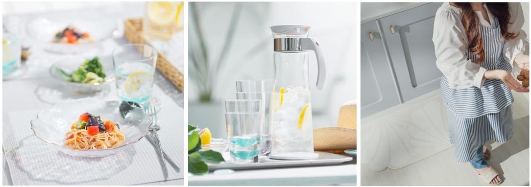 ■夏の明るい日差しを感じるガラス製のアイテムで、さわやかな食卓に