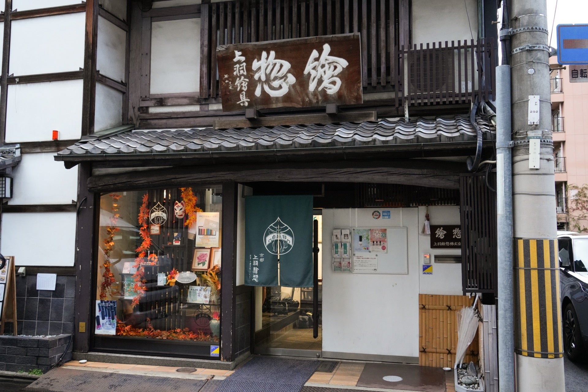 江戸時代の趣を残す店内に入ると、ずらりと並ぶ上羽絵惣の絵の具が目を引く。