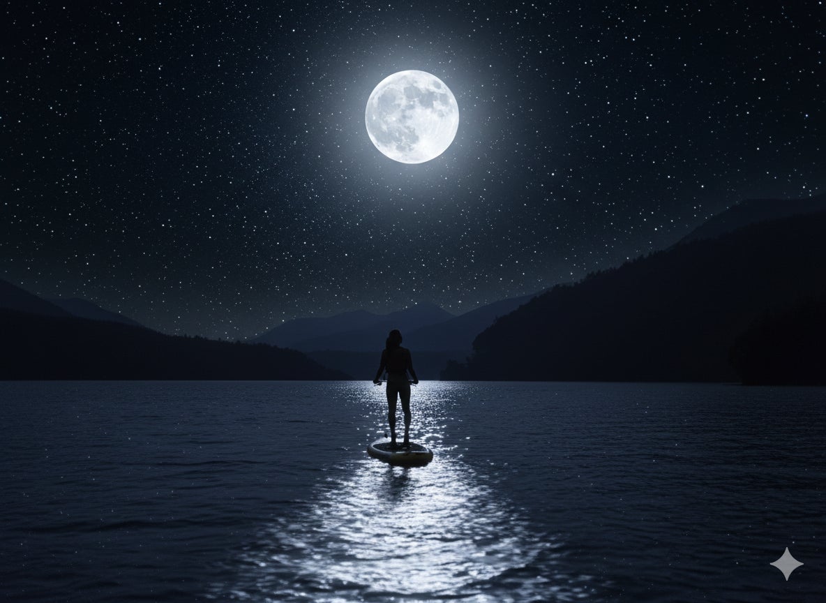 満月のエネルギーが最大になる夜、海面に現れる幻想的な「月の道(ムーンロード)」をHOBIEで進みます。