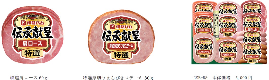 伝承献呈は、長年に亘りお客様にご愛顧いただいている、弊社を代表するハム・ソーセージギフトブランドです。伝承献呈と言えば、ブロックタイプのハムを中心にしたバラエティ豊かでボリューム感のある商品の詰め合わせがラインアップの柱となっていますが、今歳暮は伝承献呈で初となるスライスセットを新発売します。弊社が実施した調査の結果、スライスハムを含むギフトセットは、若年層からご年配まで幅広い年代のお客様に高い評価をいただける可能性がありました。こうしたニーズを踏まえ、より多くのお客様にハムの魅力をお伝えするため、このたび伝承献呈ブランドにおいてもスライスセットを新たにラインアップへ加える運びとなりました。今歳暮の新商品としては「特選肩ロース60g」と「特選厚切りあらびきステーキ80g」の2品を新たにラインアップへ加えました。これらを既存アイテムと組み合わせることで、既にご好評いただいている伝承スライスセットとは異なる、新たな魅力をお客様にお届けします。