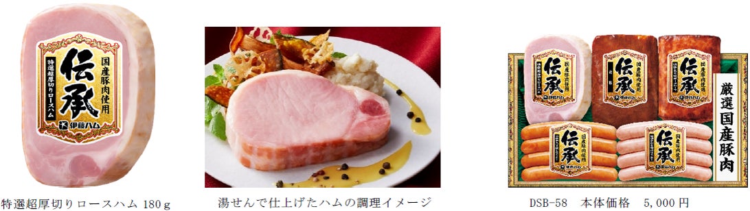 伝承からは、お客様に新たなハムのおいしさを体験していただきたいという想いを込め、「特選超厚切りロースハム180g」を新発売します。一般的なハムステーキを大きく超える厚みで、ボリューム感があり、厳選した国産豚肉で作り上げたハムのおいしさを、よりご堪能いただけます。また、お召し上がり方も湯せんしてお召し上がりいただくという、これまでにない食べ方ご提案をしています。ハムと言えば、そのままお好みの厚みにスライスして食べるか、焼いて食べるという選択肢しかありませんでしたが、湯せんをして食べるという新たな選択肢をお客様に提案しております。湯せんすることで、しっとりと柔らかい食感のハムをお楽しみいただけ、新たなハムの魅力をお伝えします。