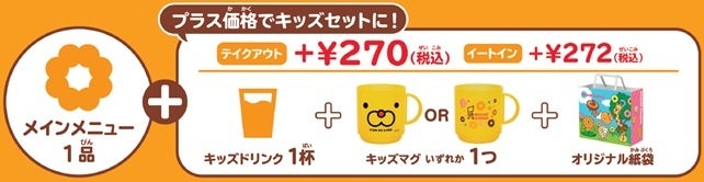 内容:ドーナツ<対象商品の中からいずれか1つ>+キッズドリンク1杯+キッズマグいずれか1つ+オリジナル紙袋