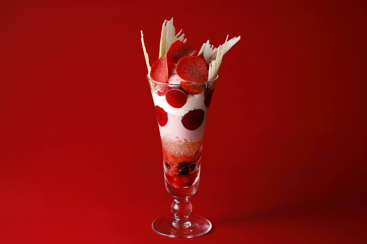 甘酸っぱい苺が主役のパフェです。旬を迎える苺の甘酸っぱい風味とローズジュレの華やかな香りが織りなすマリアージュが魅惑的な一品です。