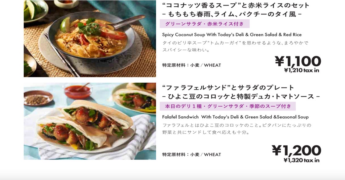 ![▲(左から)Purple Carrot [ヴィーガン]「茄子のベジグラタンとデリのプレート」、「ココナッツ香るスープと赤米ライスのセット」、「ファラフェルサンドとサラダのプレート」(イメージ)](https://prcdn.freetls.fastly.net/release_image/8895/724/8895-724-47c82a19ce2ee055c69b95e9e563ba44-889x294.png?format=jpeg&auto=webp&quality=85&width=1950&height=1350&fit=bounds) ▲(左から)Purple Carrot [ヴィーガン]「茄子のベジグラタンとデリのプレート」、「ココナッツ香るスープと赤米ライスのセット」、「ファラフェルサンドとサラダのプレート」(イメージ)