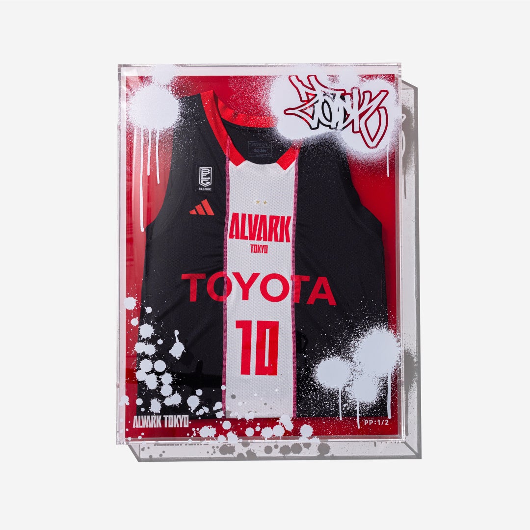 2023-24シーズン中に選手が着用したホームとアウェイのユニフォームを組み替え、額装した東京のストリートカルチャーを彷彿させるアートピースで、日本のバスケットボールカルチャーにおける新たな価値を創造
