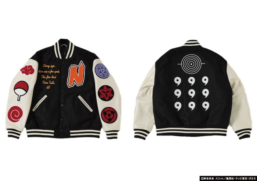 アイテムは”NARUTO”を一着で象徴するスタジアムジャンパーや、「“暁”」「尾獣」にスポットライトをあてたこだわりのアパレルを中心に展開。