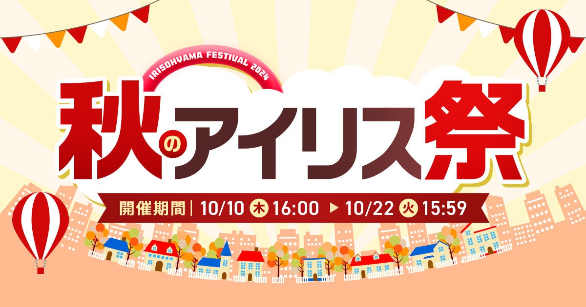 アイリスオーヤマ株式会社(本社:宮城県仙台市、代表取締役社長:大山 晃弘)は、秋のアイリス祭2024(※2)を、公式通販サイト「アイリスプラザ」で10月10日(木)16時より開催します。