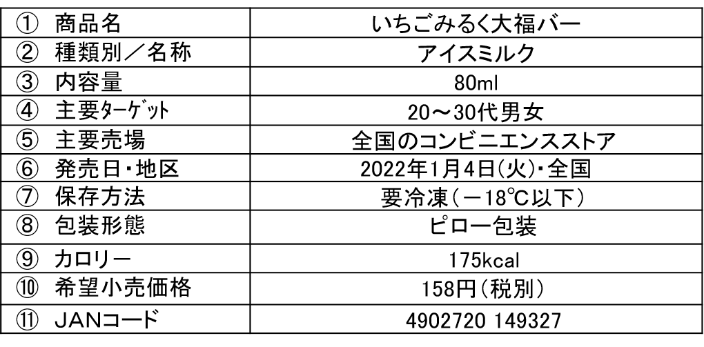 「いちごみるく大福バー」2022年1月4日(火)より数量限定発売