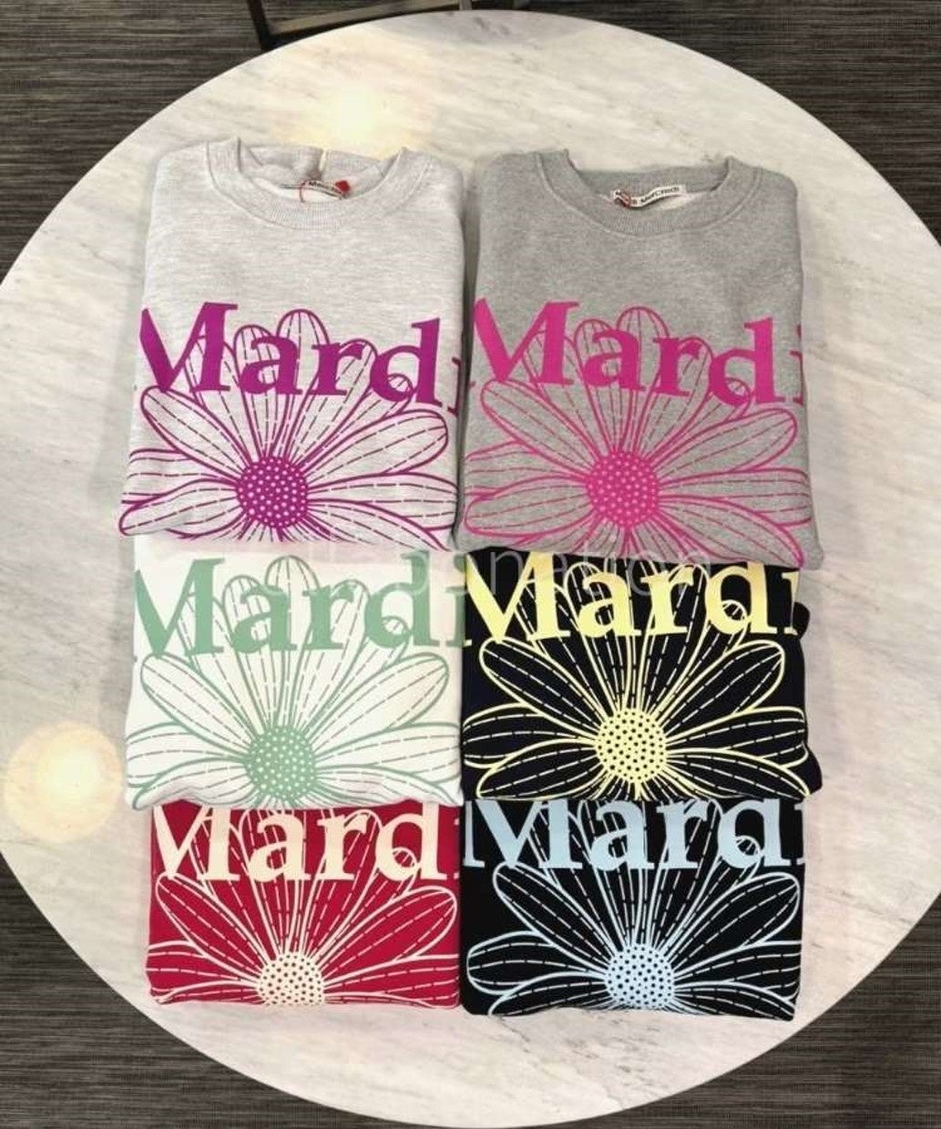「FLOWER MARDI」のプリントとオーバーサイズ感がキュートなスウェット。秋冬に活躍の厚手素材で、雰囲気の異なる20種展開。
