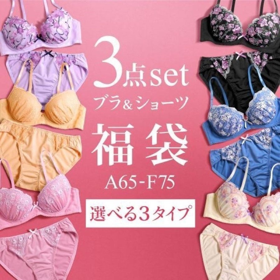 刺繍柄や華やかなカラーなどお洒落なブラ&ショーツの3点セット。フェミニンやシックなタイプなど、デザイン性の高い3種から選べる。
