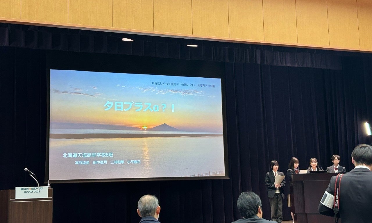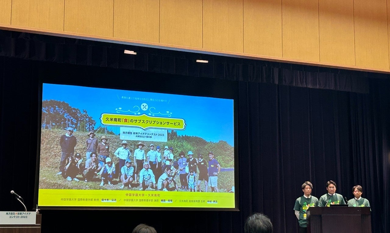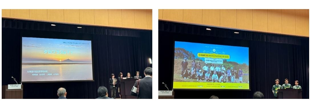当社は協賛企業として、「大学生以上一般の部」より中国学園大学・久米南町の「久米南町『食』のサブスクリプションサービス」、「高校生・中学生以下の部」より北海道天塩高等学校6班の「夕日+α?!」を選出し、さとふる賞を贈賞しました。
