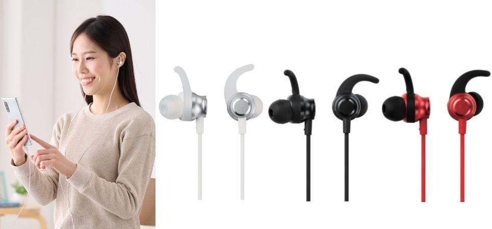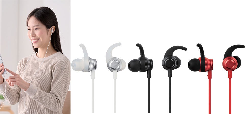 耳へしっかりフィットするイヤーアーム付きカナル型ヘッドホン