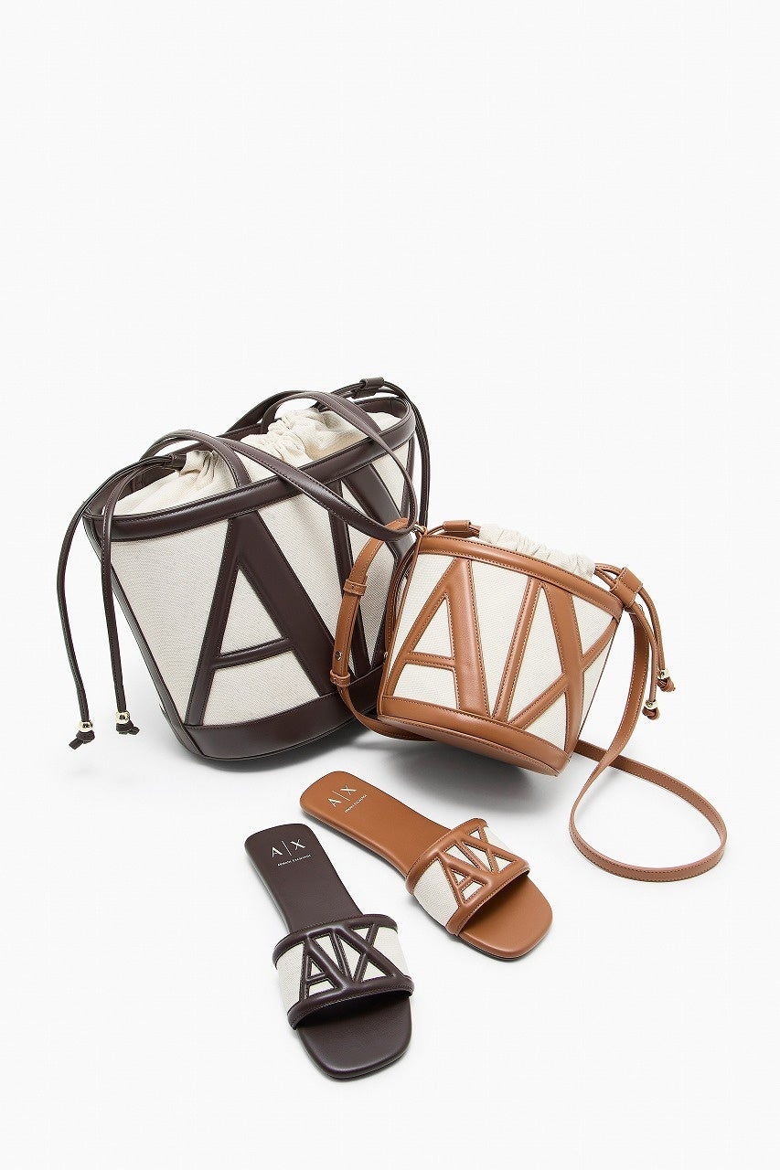 キャンバス素材をベースに、エコレザーのディテールを掛け合わせることで、A|X ロゴを大胆に表現。ナチュラルな風合いとクリーンな質感のコントラストが、カジュアルさの中にさりげない洗練をもたらします。