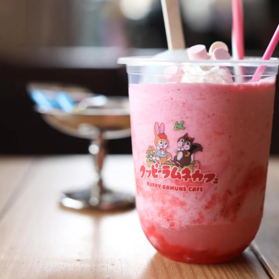昭和より続く駄菓子のクッピーラムネをイメージしたドリンクになります!甘さと酸味のあるフラッペや、レトロ感のあるクリームソーダにクッピーラムネを使用しました。一度ご賞味ください!
