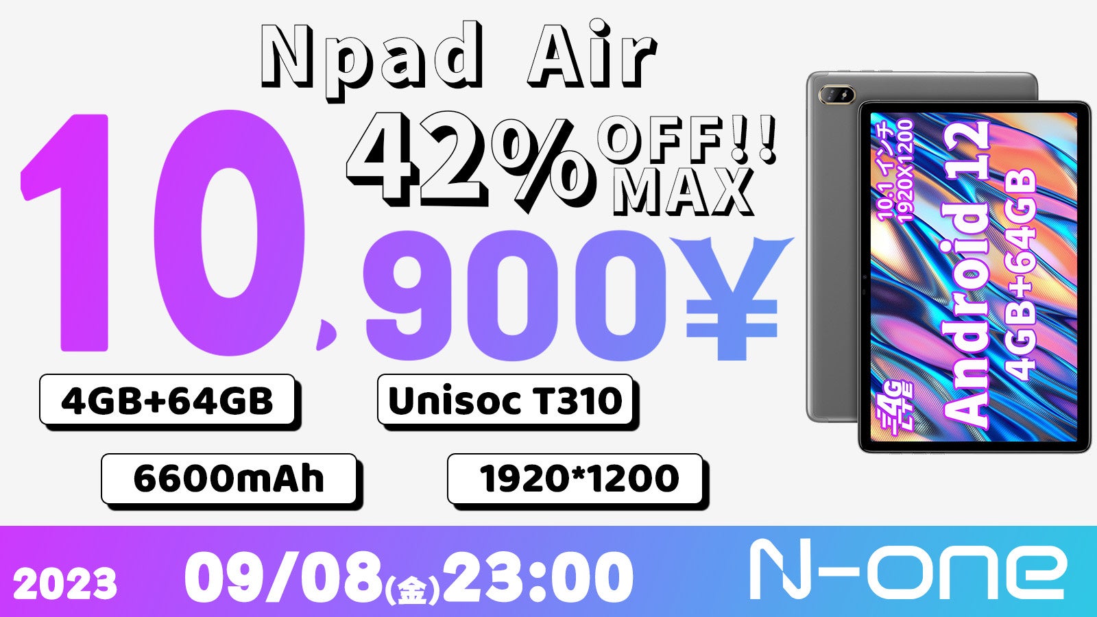 Npad Airは、12nmプロセスのクアッドコア(最大2.0GHz)高性能CPU「Unisoc T310」を搭載しています。