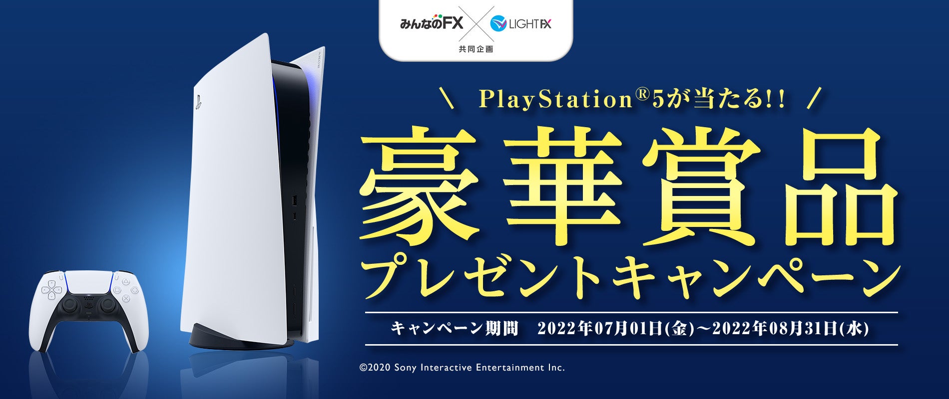 本キャンペーンは、期間中の「みんなのFX」「LIGHT FX」いずれかにおける入出金差額が一定条件をクリアしたお客様に、抽選で豪華賞品をプレゼントいたします。今話題のPlay Station®5やAK Racingのゲーミングチェア等をご用意しておりますので、この機会にぜひキャンペーンへのお申込と「みんなのFX」「LIGHT FX」のご入金をご検討ください。