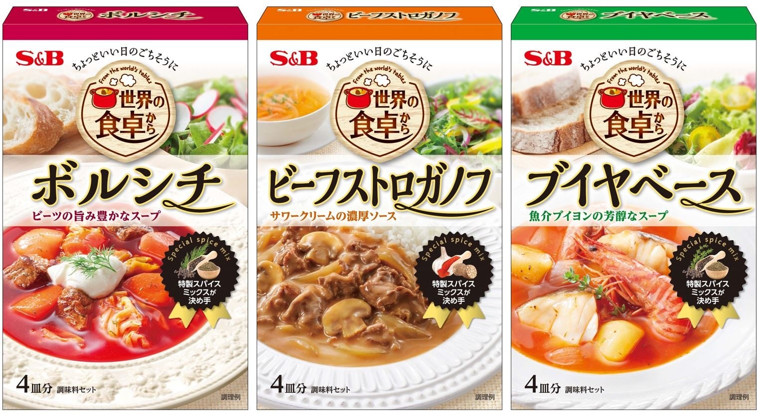 世界の料理が手軽に作れる ちょっといい日のごちそうに 世界の食卓から 「ボルシチ」「ビーフストロガノフ」「ブイヤベース」 8月12日 新発売