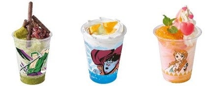 (左)剣士ゾロの抹茶氷 ~小豆&わらび餅~ (中)ジンベエの渦潮ソーダ ~ライム&オレンジ~