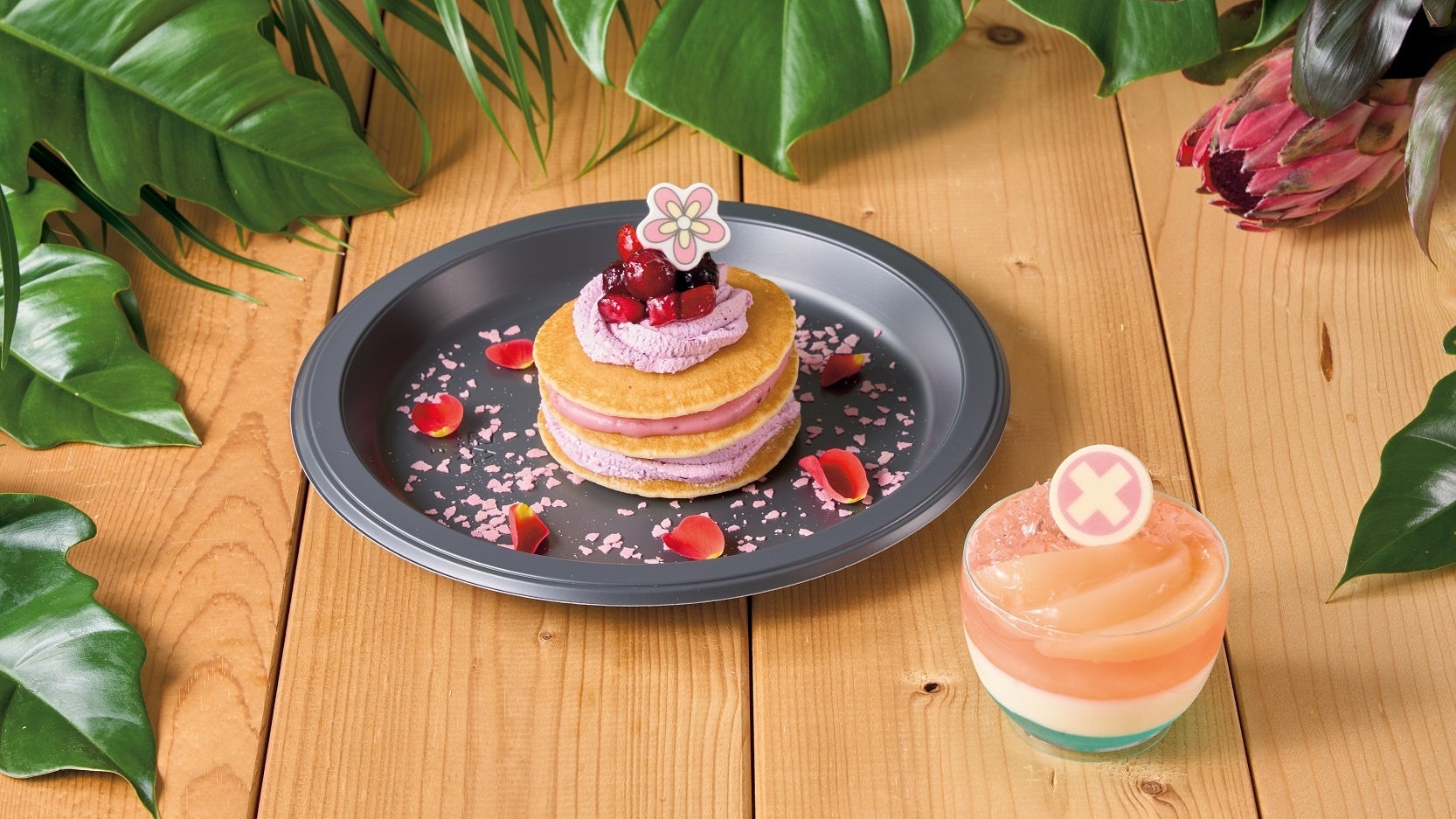 そして、「ゾロ」、「ナミ」、「ジンベエ」をイメージした、暑い夏にピッタリの冷たいドリンク&フラッペも 登場!『剣士ゾロの抹茶氷 ~小豆&わらび餅~』は、「ゾロ」の三刀流を彷彿とさせる和風の抹茶フラッペで、たっぷりと最強剣士の気分を味わうことができます。『ナミさんへ捧げるフローズン・スムージー ブランマンジェ添え ~みかん&ピーチ~』は、「サンジ」が「ナミ」のために作った渾身の特製スムージーです。