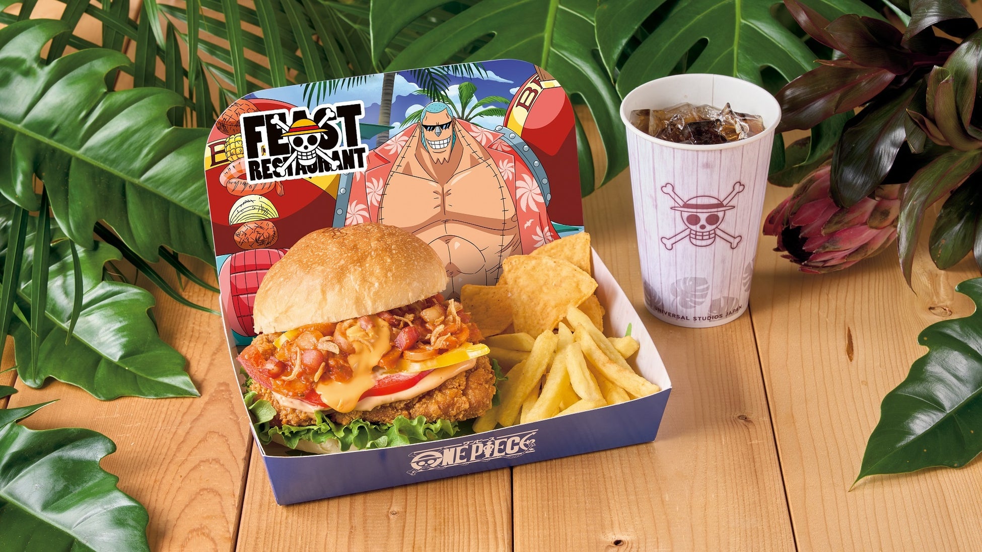 この夏、毎年大好評を博している『麦わらの一味の宴レストラン』では、初登場となるハンバーガーセットをはじめ、ユニークな“宴”メニューがラインナップ!