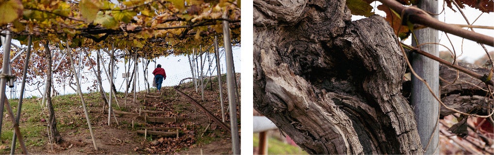 「カタシモワイナリー」は栽培の歴史も長く、現在、日本に現存する樹齢100年超えの甲州ブドウはわずか5本と言われていますが、そのうちの4本は「カタシモワイナリー」の圃場で大切に育てられています。また、ワイナリー敷地内には、国の登録有形文化財に指定されている貯蔵庫や、柏原市指定有形民俗文化財に指定されているワイン造りの歴史ともいえる明治~大正時代の醸造器具35点が現存しています。