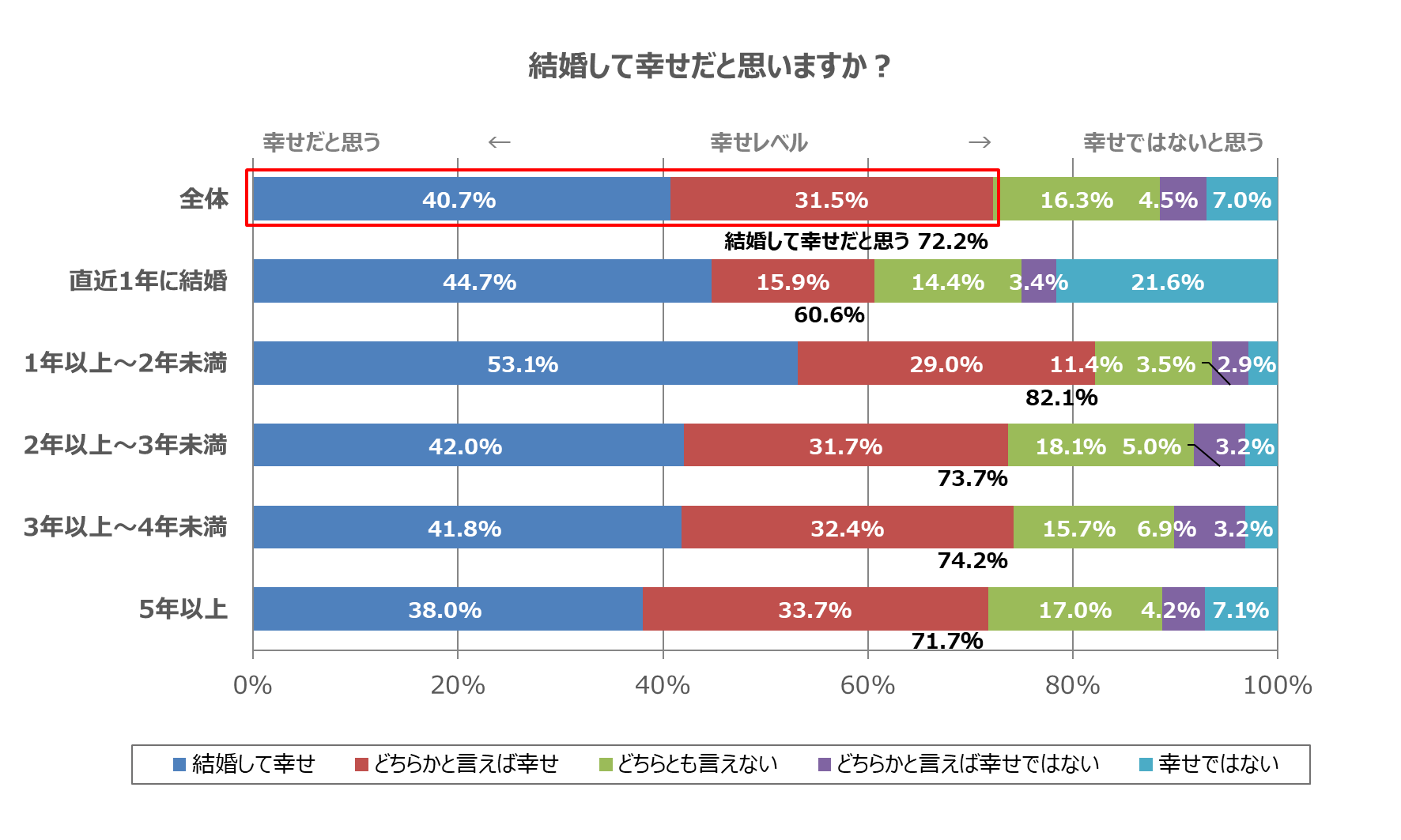 結婚した人のうち、72.2%が「幸せ」を感じている