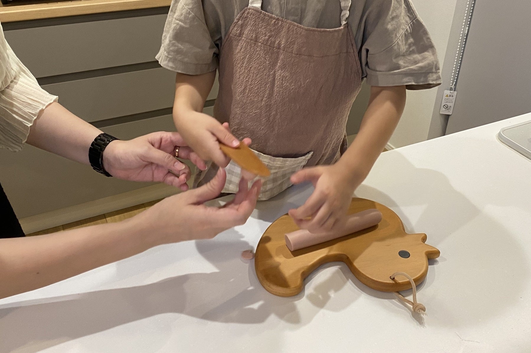 子どもは未就学の時期から親の行動を真似たがります。料理に興味津々である子どもたちに、安全に包丁の使い方を学べる環境を提供したいと考え、「キッズウッドナイフ&カッティングボードセット」を開発しました。