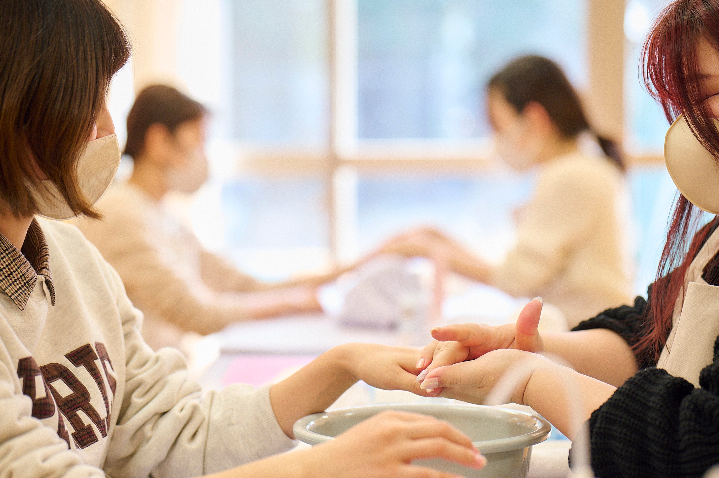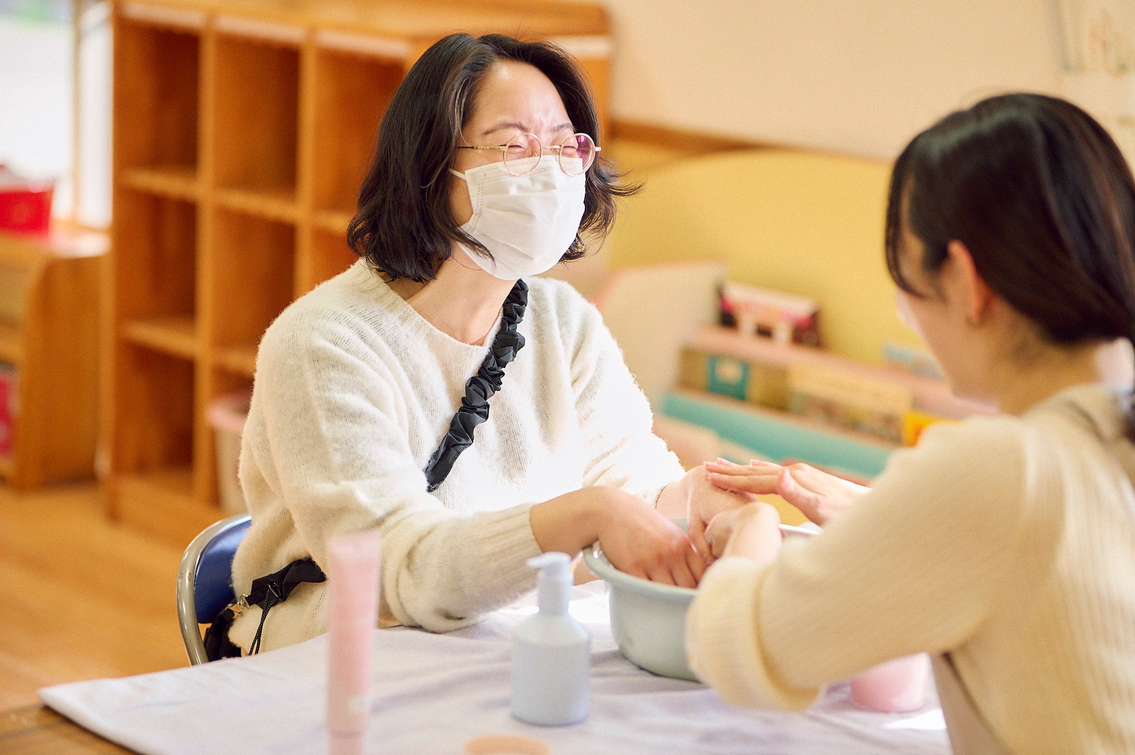 女性史月間に母子生活支援施設で働く職員たちをハンドマッサージで支援