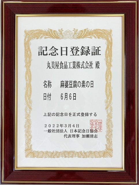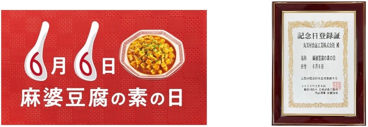丸美屋食品工業株式会社(本社:東京都杉並区、社長:阿部豊太郎)は、「マーボといったら丸美屋♪」でおなじみの「麻婆豆腐の素」を1971年6月6日に発売したことから、同日を「麻婆豆腐の素の日」と制定し、日本記念日協会( https://www.kinenbi.gr.jp/ )に認定されました。また、記念日に合わせて丸美屋公式Twitterにてキャンペーンを2回実施いたします。