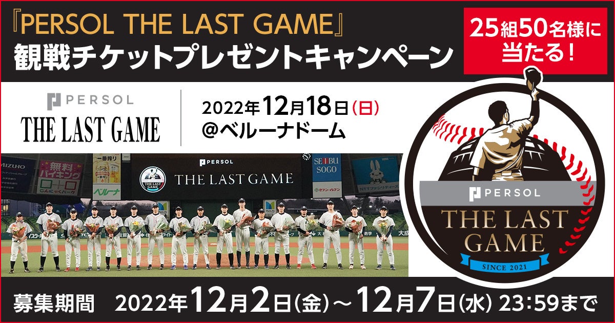 『PERSOL THE LAST GAME 2022』の観戦チケットを抽選で25組50名さまにプレゼント。
