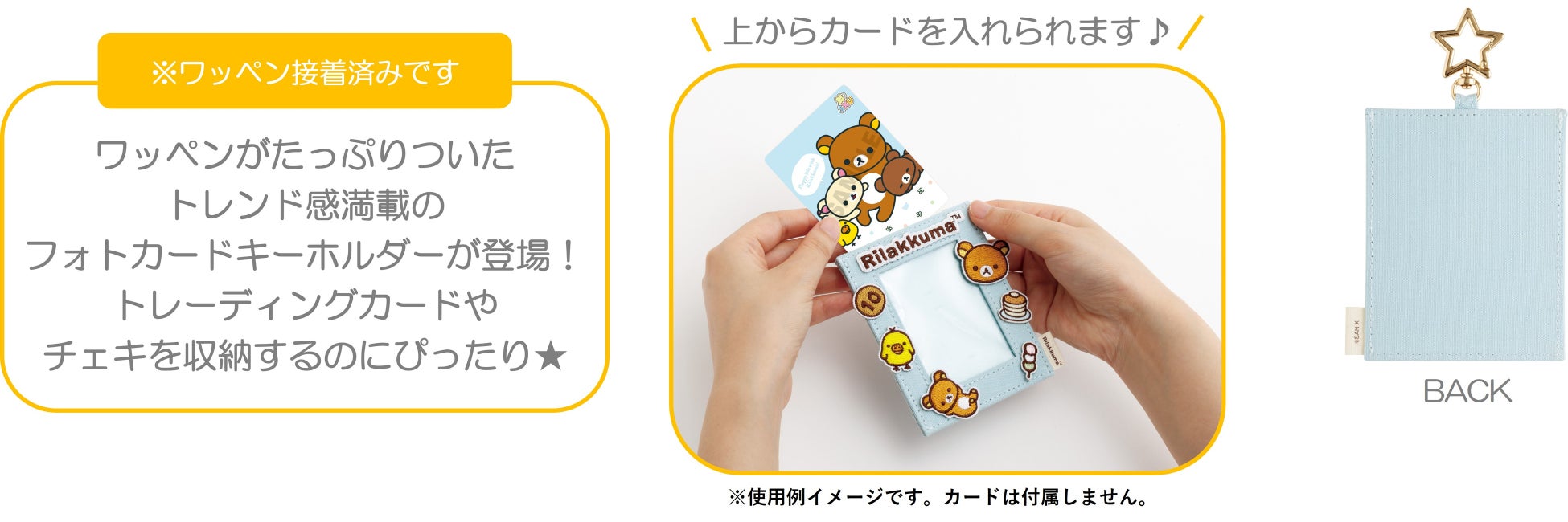 アイロン接着はもちろん、シールとしても使用できるワッペンをはじめ、ワッペンを好きな位置に張り付けて自由にカスタムが楽しめる、タグキーホルダーとワッペンのセットや、トレーディングカードやチェキを収納するのにぴったりなフォトカードキーホルダー、トレンドのワッペンがたっぷりついたデザインのポーチが登場します。