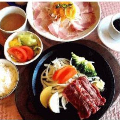 金賞ハムと、炭板で焼くステーキのお店です。