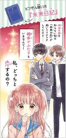 私、間宮志穂。おしゃれが大好きな中一。毎日、学校の先輩や雑誌の中の芸能人に、胸がキュンキュンでいっぱいになるけど、私の恋は実ったことないし、彼氏ができたこともないんだ。……本当の恋を、知らないのかもしれない。そんな私に、『未来日記』が届いたの! 出会うはずのないふたりが、日記によって恋に落ちるか実験する――、極秘恋愛実験の被験者に選ばれちゃった! ステキな恋ができるかも?とウキウキで日記の通りにしたら、かっこいい男子がふたりも現れた! ふたりの手にはそれぞれ『未来日記』が……。え? これってどういうこと? そう、『未来日記』の相手がふたりもいたんだ! タイプが正反対のふたりと会う度に、私の想いはゆれてしまって……。私、どっちと本当の恋をするの?
