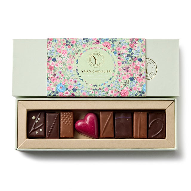8種のショコラが1粒ずつ詰まったイヴァンの定番コフレ。ガナッシュは素材の風味を最大限に引き出し、口に入れた瞬間に溶けるような滑らかさを追求。プラリネは、ナッツの香ばしさとキャラメリゼのバランスが絶妙で、独特のサクサクとした食感を実現しています。