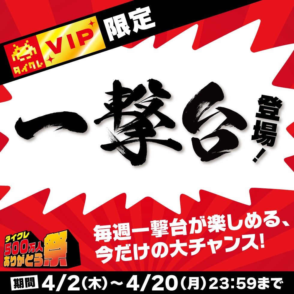 期間中、VIP限定台に景品が1回で獲得できる大チャンスの「一撃台」を展開します。VIPステータスの方は、獲得後も毎週月曜日に再度プレイいただけるようになりますので、ぜひ展開後は毎週挑戦ください。