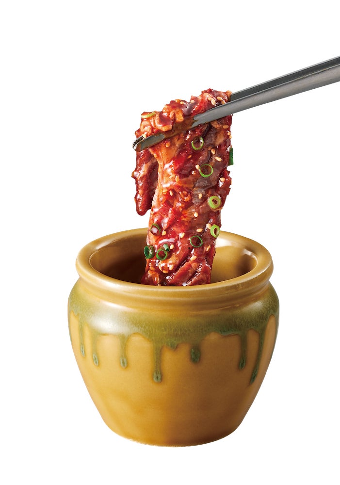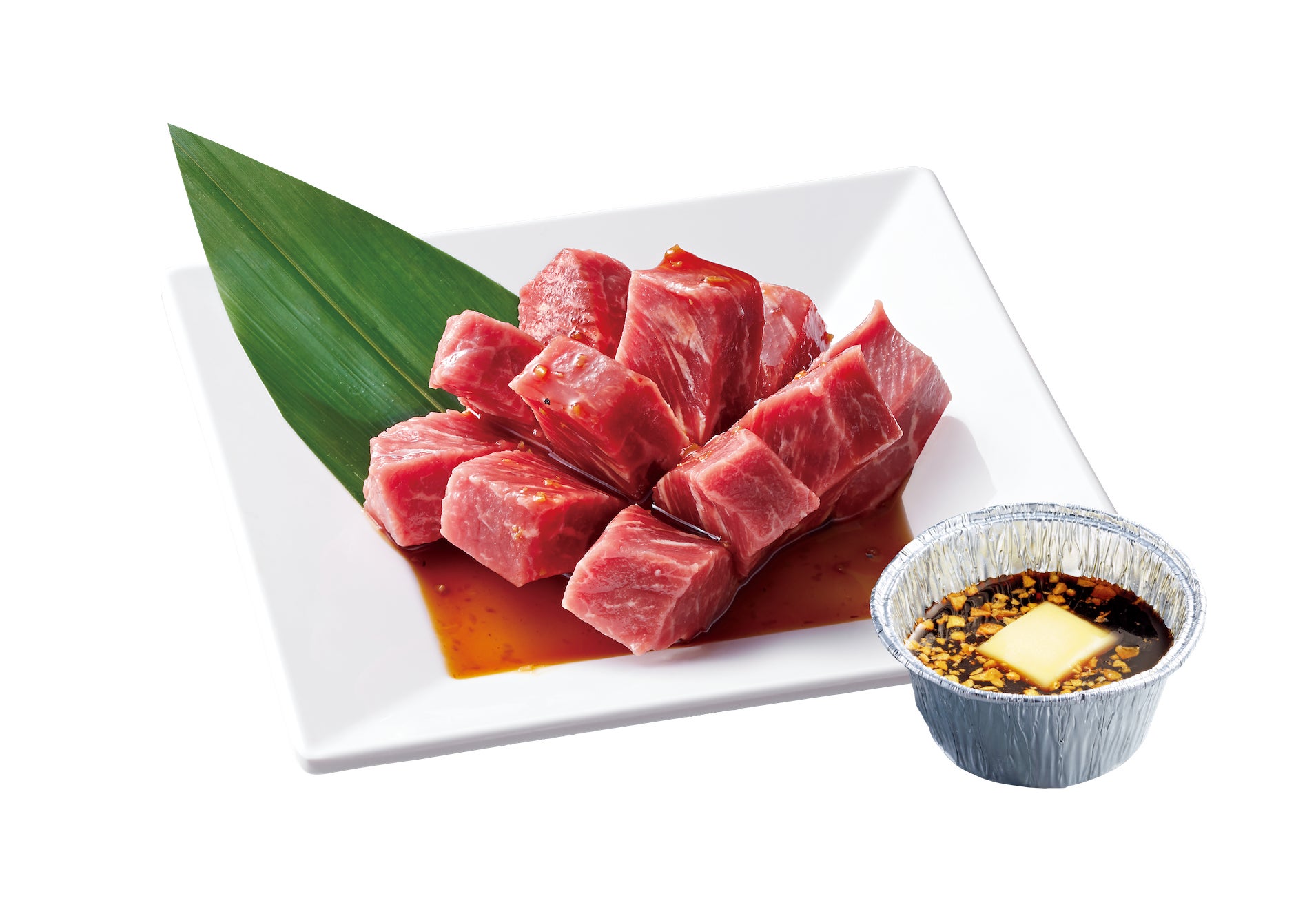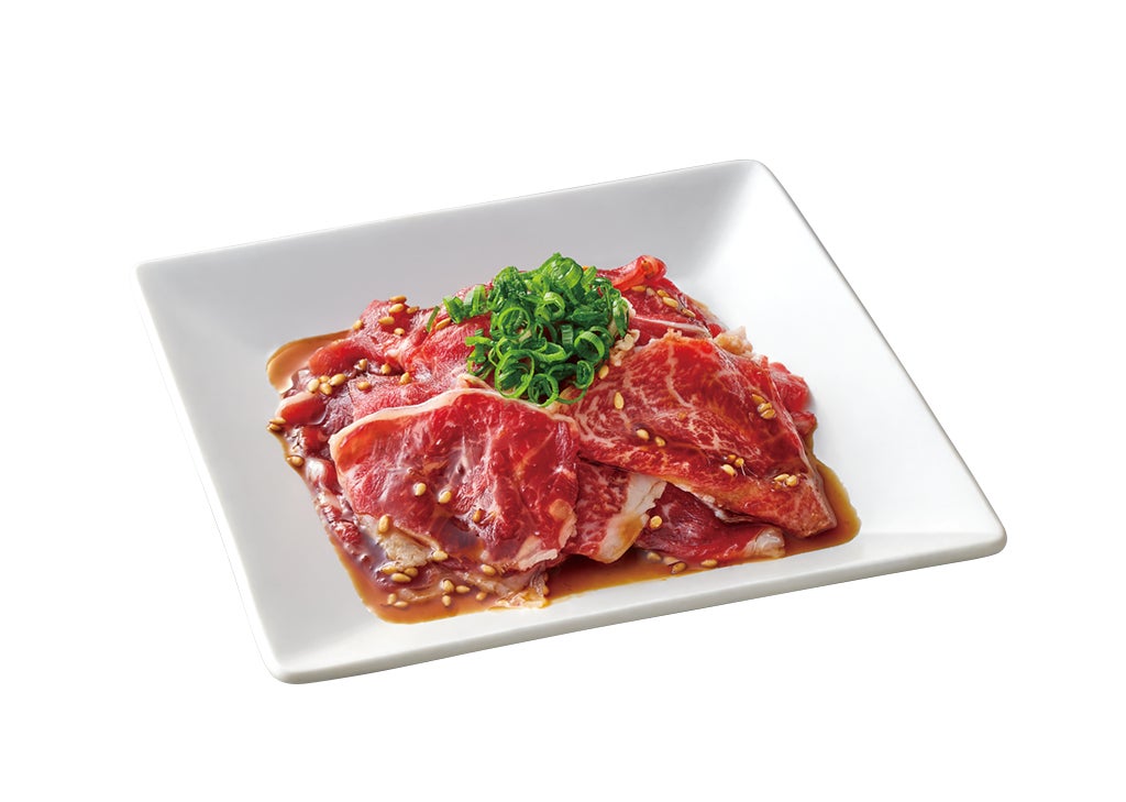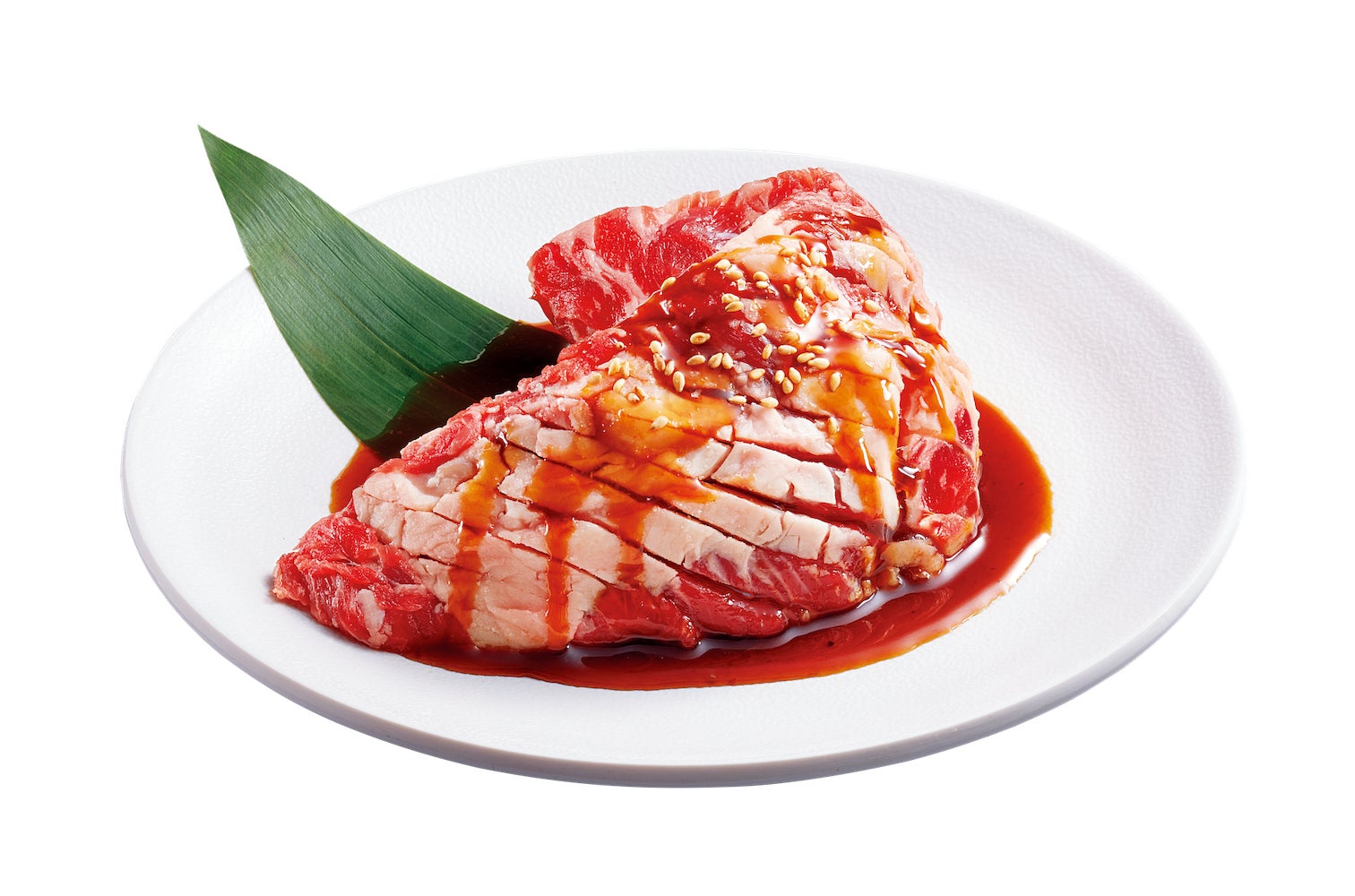⼀頭から約500gほどしか取れない希少部位を使⽤し、独⾃のスリット加⼯で柔らかくした、⾁質の良さが際⽴つカルビ。スリットの⼊った⾯から焼くことでお⾁の旨みを逃さずお召し上がりいただけます。タレは濃⼝醤油とにんにく、唐⾟⼦などをブレンドしたオリジナルで、ご飯との相性が抜群になるよう仕上げています。