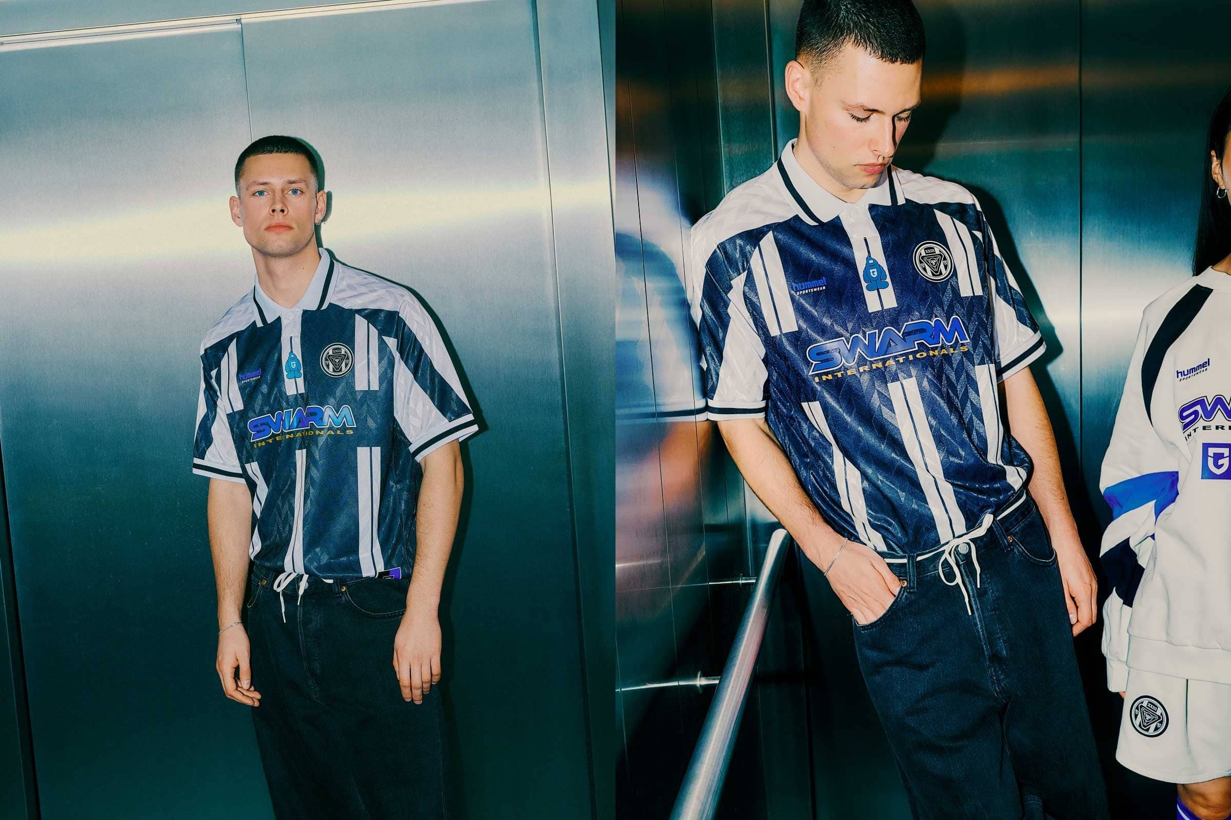 アイテムは、ユニフォーム型シャツ、ショーツ、Tシャツ、スニーカーの4種類。サッカーにインスパイアされた要素に加えて、日本屈指のサッカーチームであるガンバ大阪のユニフォームや素材、ロゴに敬意を表し、クラブの歴史を象徴する大胆で鮮やかなデザインをヒュンメルらしくミニマルに表現しました。