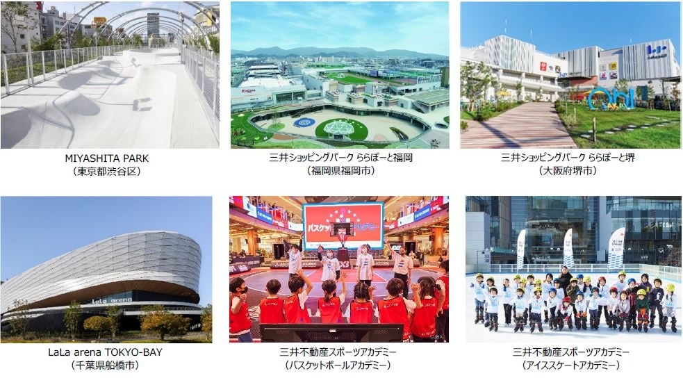 ボルダリングウォールやスケート場などを備えた「MIYASHITA PARK」、200m陸上トラックなどを含むスポーツパークを有する「三井ショッピングパーク ららぽーと福岡」、本格的なスポーツ・エンターテインメントイベントが実施可能な屋内型スタジアムコートを有する「三井ショッピングパーク ららぽーと堺」などの『場』を整えるとともに、子どもたちがアスリートの1DAYのレッスンを受けられる「三井不動産スポーツアカデミー」などのイベント実施をはじめとした『コミュニティ』づくりを進めており、その取り組みを加速しています。