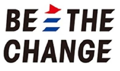 「BE THE CHANGE」のロゴは、世界を変える「風」をモチーフに