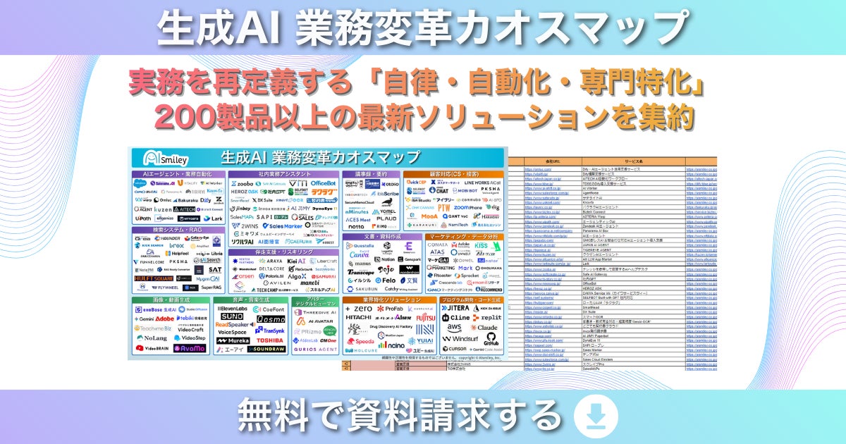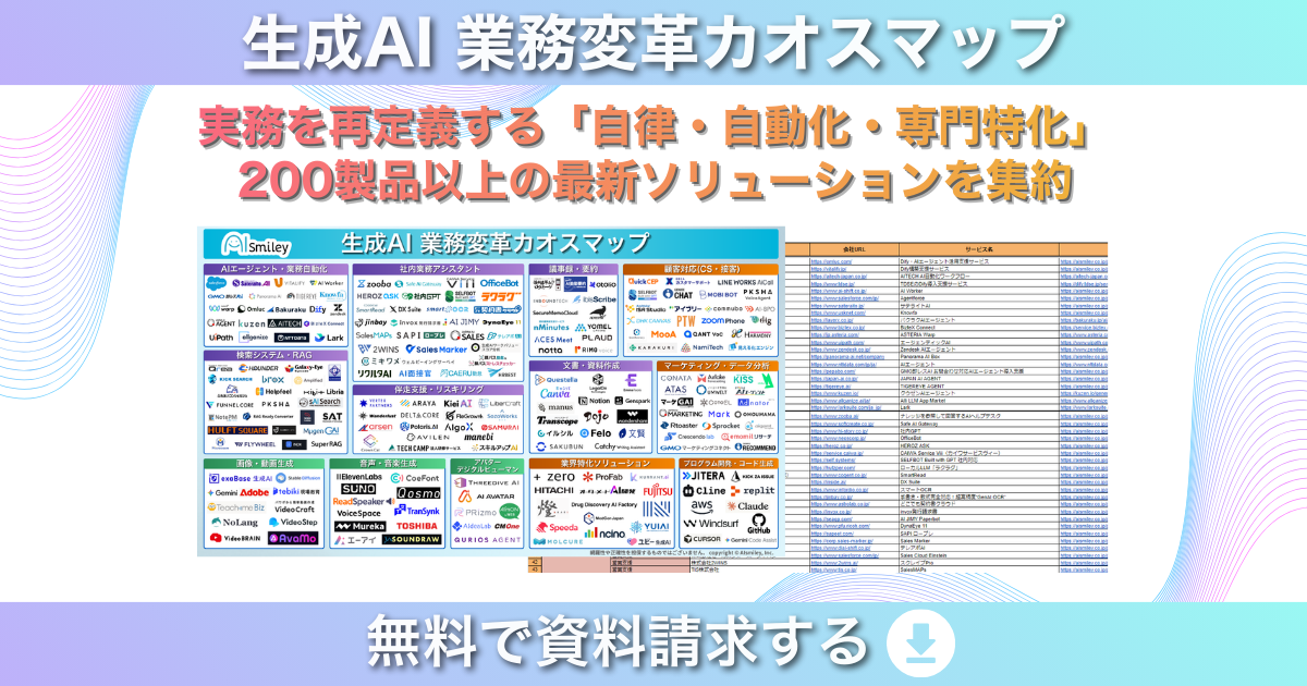 ※本資料はプレスリリースや製品サイト、導入実績などの公開情報を基にAIsmiley編集部が独自の視点で取りまとめたもので、網羅性や正確性を完全に担保するものではありません。