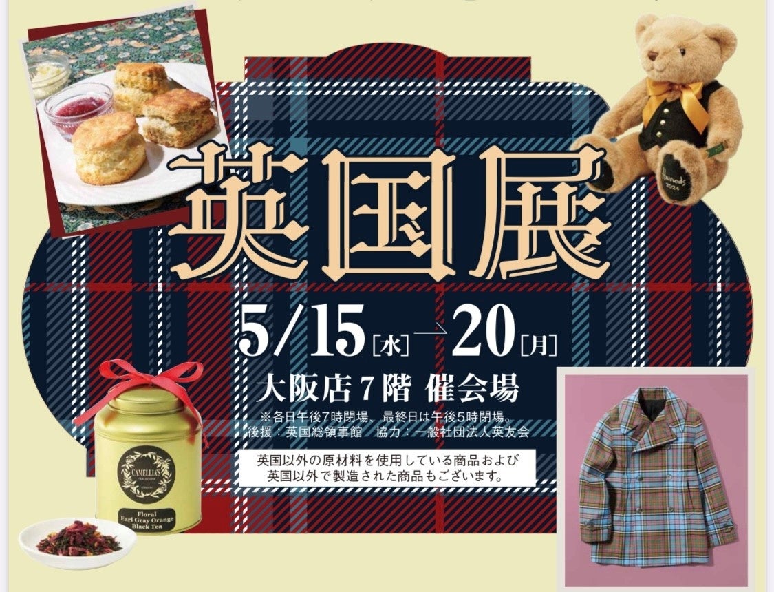 高島屋大阪店では、5月15日(水)から20日(月)までの6日間に「英国展」を開催します。優雅なティータイムからスローなバータイムまで、老若男女で楽しめるグルメをご用意するほか、クラシカルなファッションや英国王室の歴史を感じるグッズも登場します。さらに、スコットランドの伝統楽器「ハイランド・バグパイプ」演奏などのイベントも加え、会場全体で英国を感じられる催しです。
