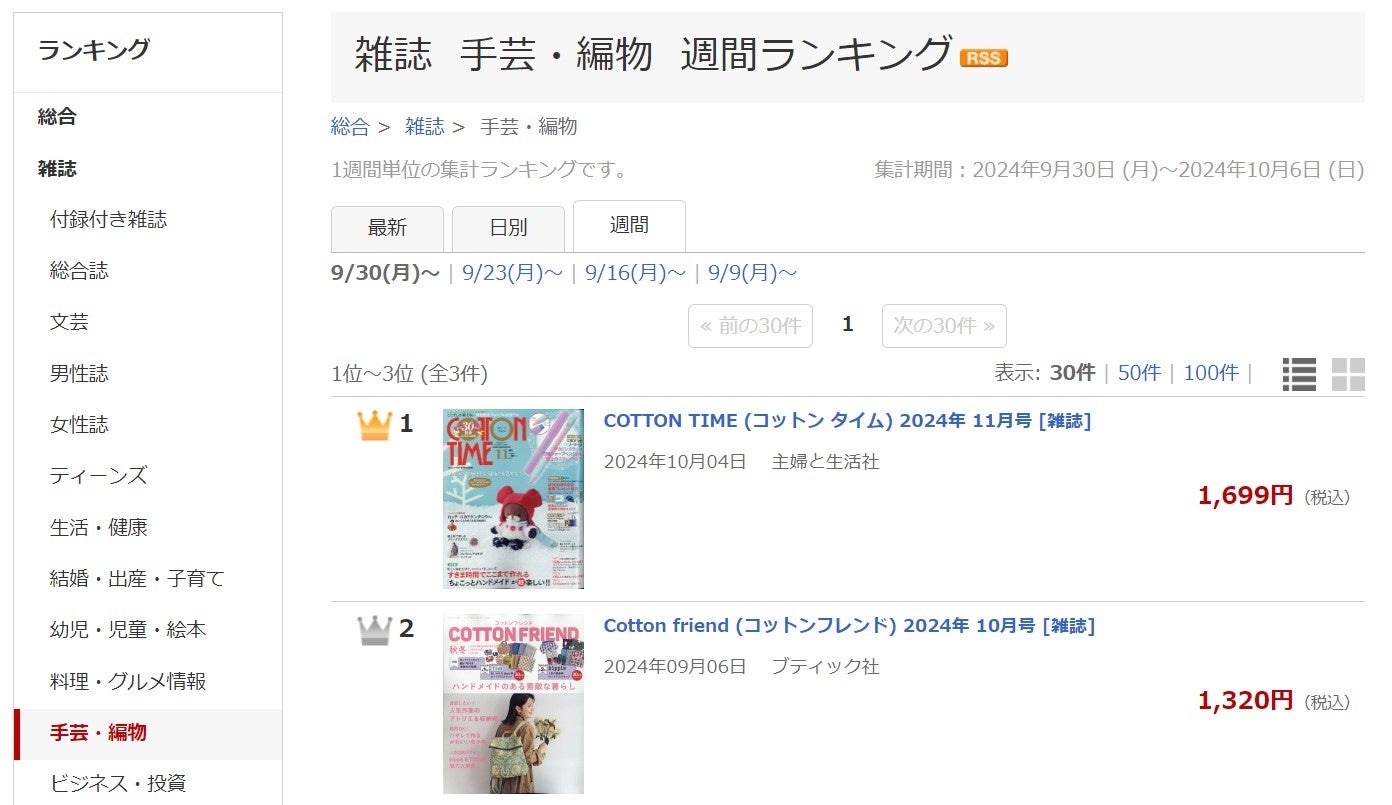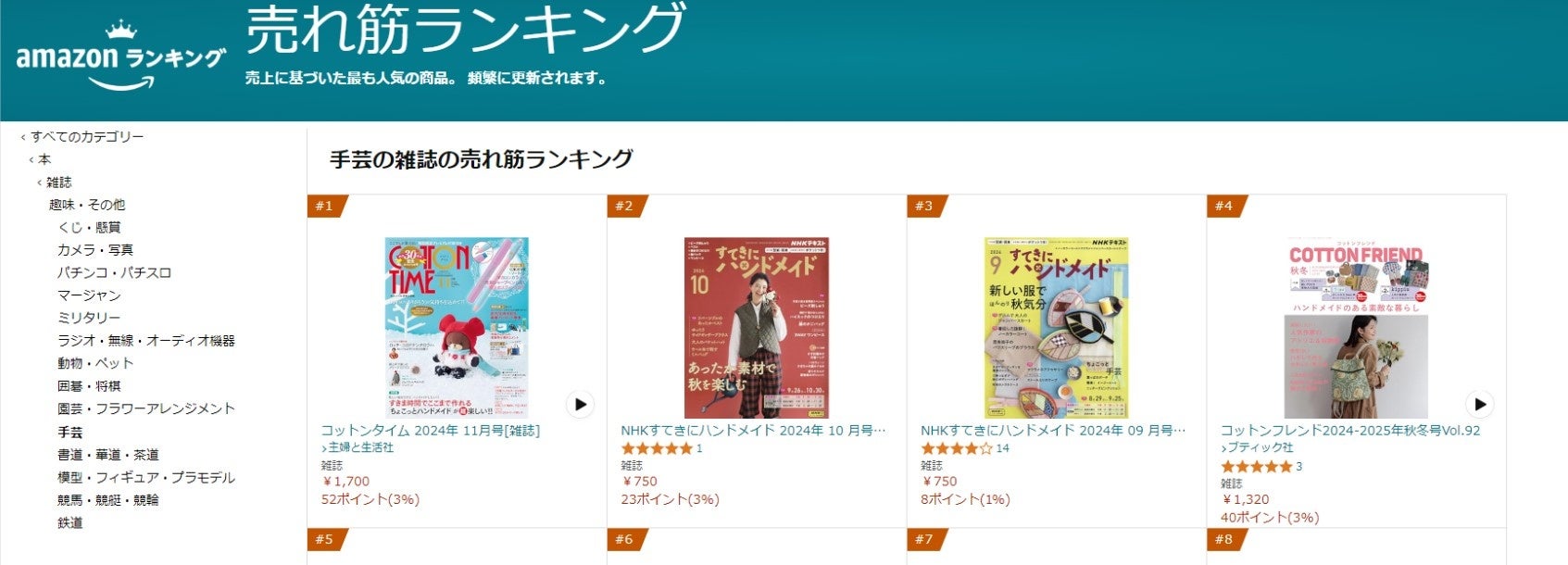 ※Amazon売れ筋ランキング[雑誌/手芸]部門1位、楽天ブックス[雑誌/手芸・編物]週間ランキング1位を獲得しました!(2024年10月9日現在)