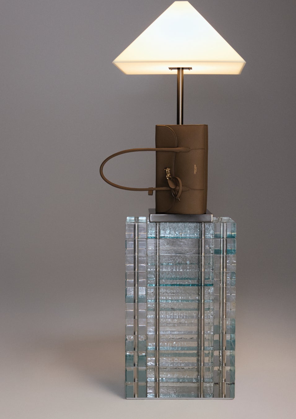 メゾンのアーカイブから着想を得た、幾何学的なフォルムが特徴の本シリーズ。ペブルドカーフスキンのやわらかな質感と構築的なラインが静かに調和し、控えめでありながら印象的な存在感を湛えます。