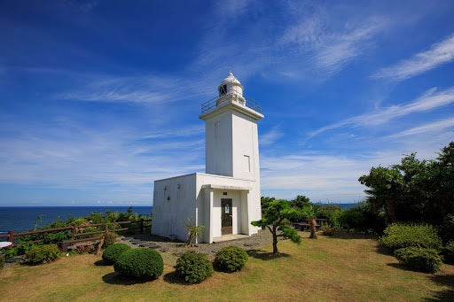宮城県・雄勝半島の最東端、大須浜の高台に建つ灯台。第二次大戦後の1949(昭和24)年、大須漁港に出入りする漁船や雄勝半島沖を航行する船舶の航行安全に寄与するために建てられた。